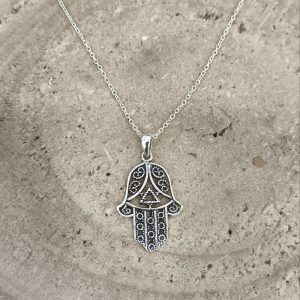 Colgante Mano de Fátima en plata envejecida con cadena 45cm