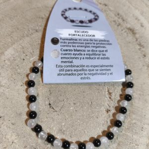 Pulsera escudo fortalecedor turmalina negra y cuarzo blanco en 4mm