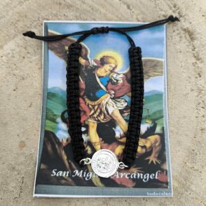 Pulsera Arcángel San Miguel – plata de ley y macramé negro