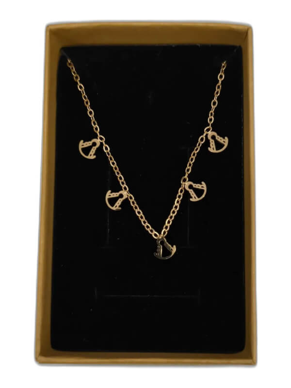 Colgante fabricado en acero con baño dorado que representa la figura de la Virgen del Rocío. Presenta un ligero brillo cálido en su superficie y detalles finos en el relieve que definen la silueta y rasgos del motivo religioso. Su tamaño compacto y el anclaje para cadena permiten llevarlo cómodamente como pieza diaria o en ocasiones especiales.