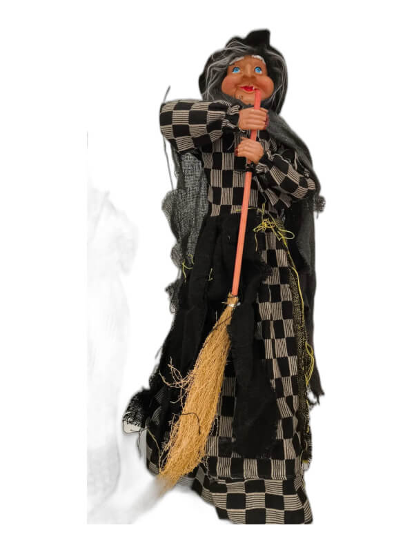 Figura decorativa “Bruja” de 50 cm, con detalles trabajados que le aportan presencia en cualquier rincón del hogar. Su tamaño la hace visible sin ocupar demasiado espacio, resultando muy adecuada para estanterías, altillos o espacios rituales.