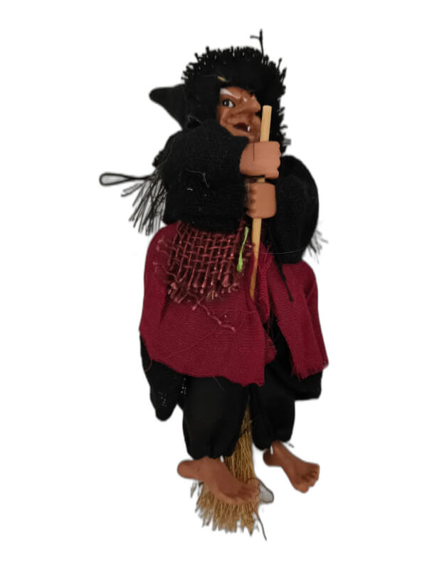 Figura de bruja para colgar que mide 16 cm de alto, ligera y con el anclaje listo para colocar en pared, puerta o en un rincón del altar. Su silueta y los detalles tallados ofrecen presencia visual y textura, aportando un punto focal decorativo que no pasa desapercibido.