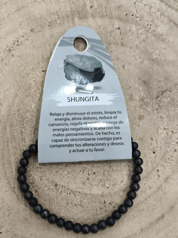 Pulsera formada por cuentas redondas de shungita en un negro profundo, con un acabado pulido que realza su textura natural. Viene en pack de 2 unidades y está montada en hilo elástico resistente para una colocación cómoda y segura.