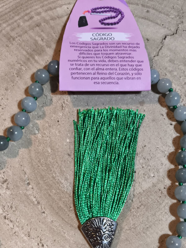 Pulsera formada por 45 cuentas de jade pulido en tonos verdes, con un brillo suave y tacto sedoso. Las cuentas están ensartadas en un hilo resistente que permite un ajuste cómodo y una caída equilibrada en la muñeca, mostrando la belleza natural de la piedra en cada movimiento.