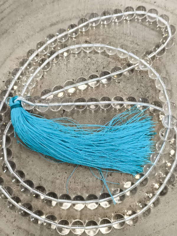 Mala tradicional formado por 108 cuentas de cuarzo blanco natural, con tonalidad translúcida y brillo suave que aporta una sensación de pureza. Las cuentas están ensartadas sobre un hilo resistente con un acabado pensado para el uso continuado y la repetición de mantras.