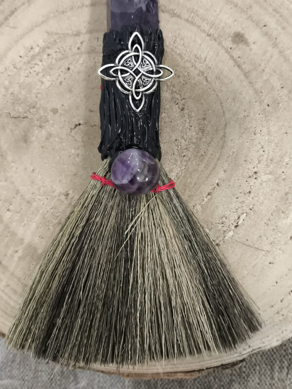 Escoba de Bruja con Amatista y Nudo de Bruja