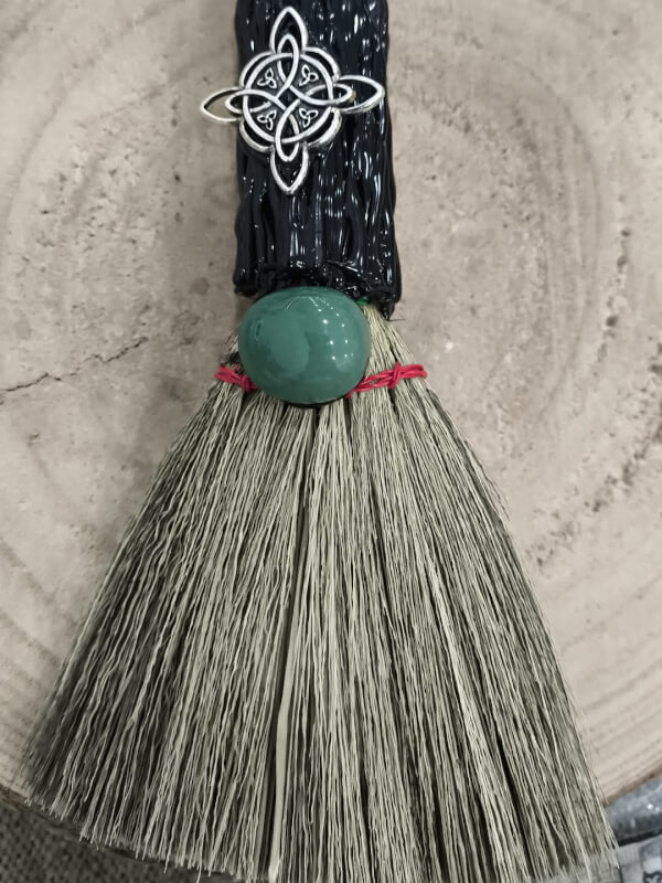 Escoba de bruja con Cuarzo Verde y Nudo de Bruja