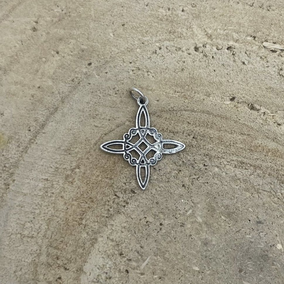 Realizado en plata envejecida, este colgante combina tradición y estilo, convirtiéndose en una pieza única con un acabado místico y elegante.