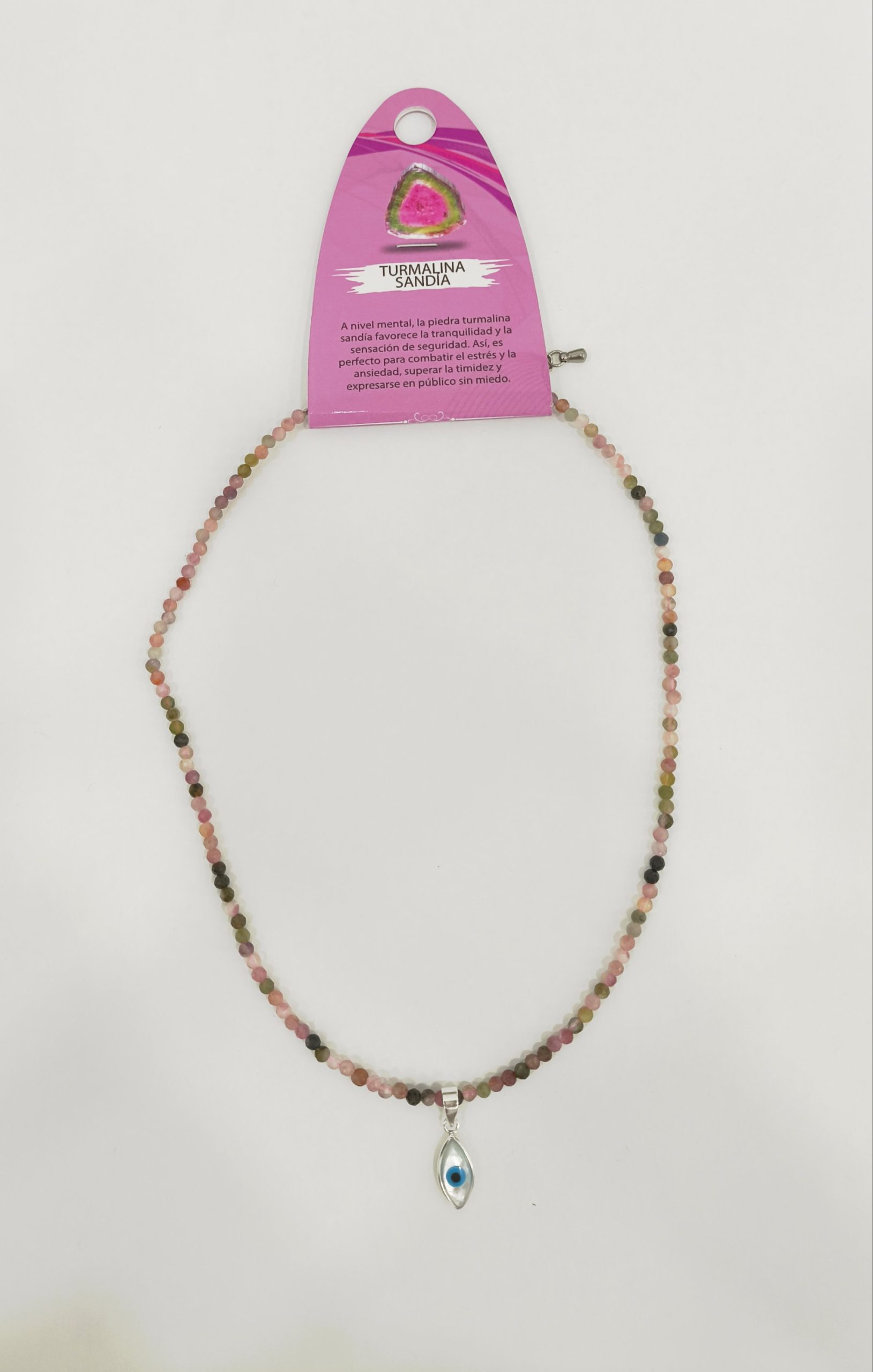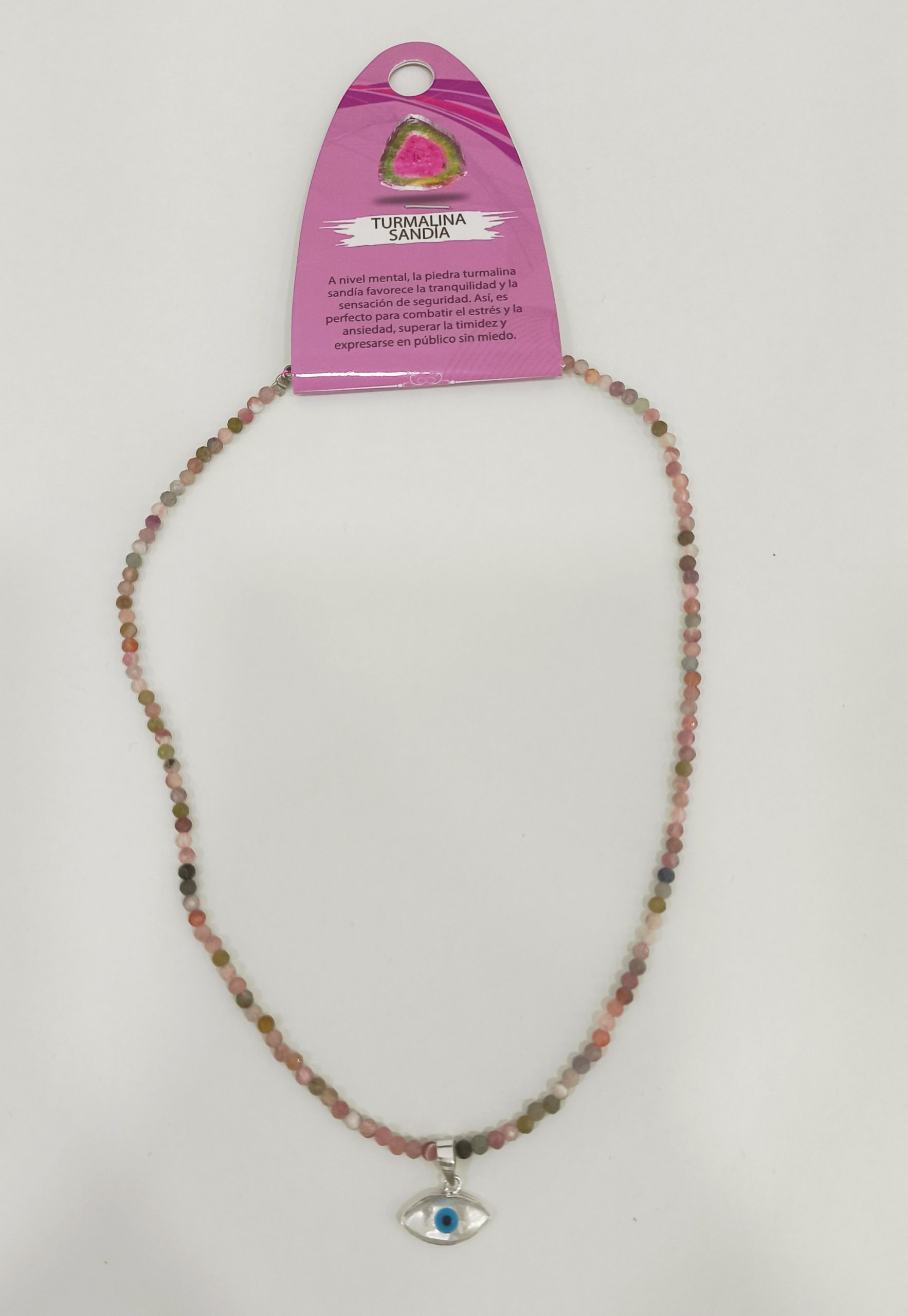 Gargantilla Turmalina Sandía con Ojo Turco en Nácar